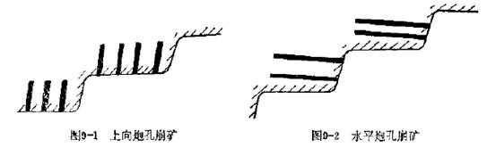 嚴(yán)格來(lái)講,地下采礦場(chǎng)使用的中深孔崩礦和深孔崩礦比較,從爆破本質(zhì)上講,沒(méi)有嚴(yán)格區(qū)別。但是,深孔爆破在其炮孔布置形式、孔深等方面有其特點(diǎn),于是,把用潛孔鉆機(jī)鉆鑿孔深大于